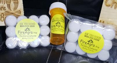 💡 Imagine handing a customer a pill bottle of fire starter pills — they’ll never forget you. It’s the ultimate conversation piece that doubles as a unique business card.